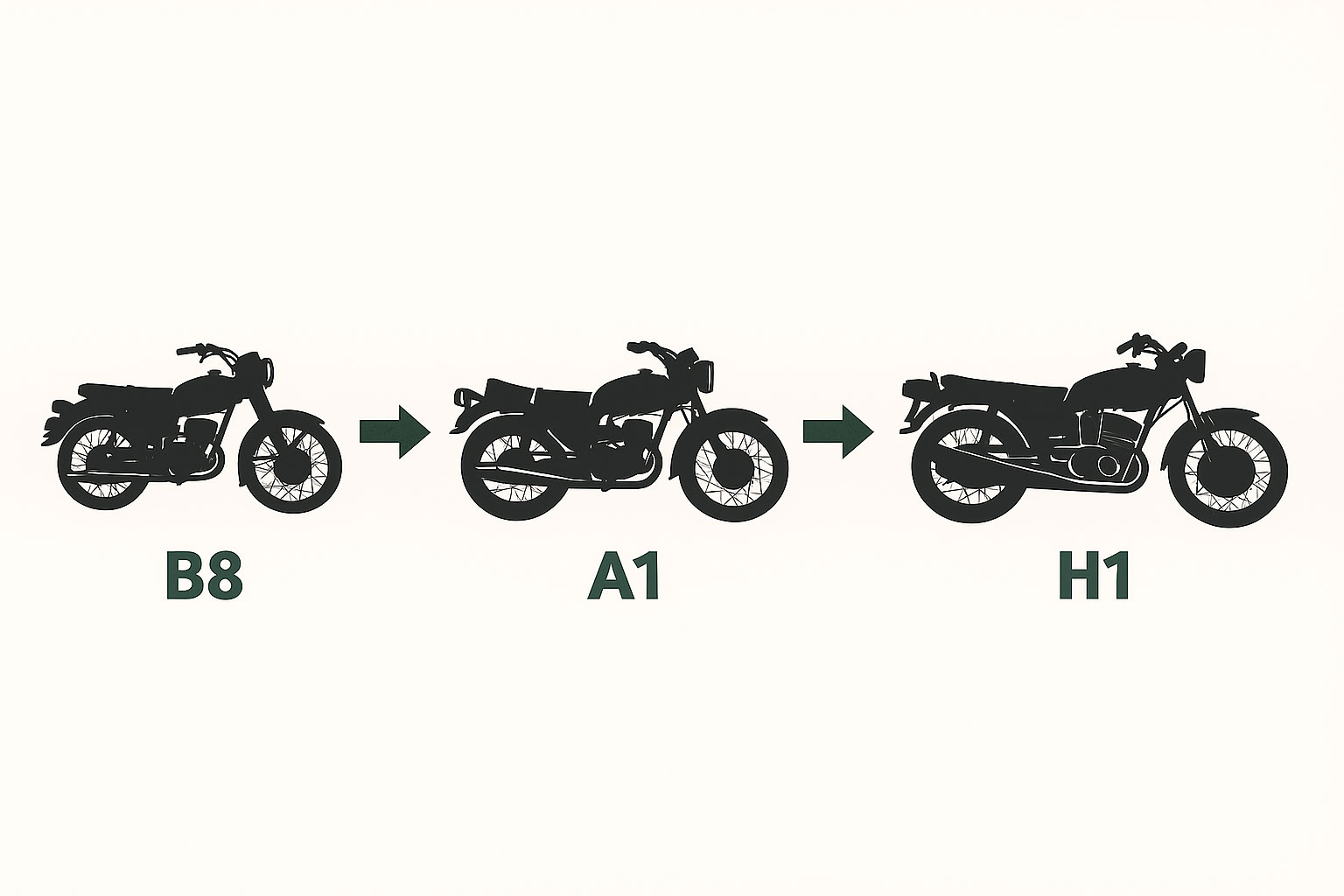 이 H1 역시 B8에서 출발한 ‘가벼운 차체 + 고출력 2행정 엔진’이라는 개발 철학을 그대로 이어받은 모델입니다.