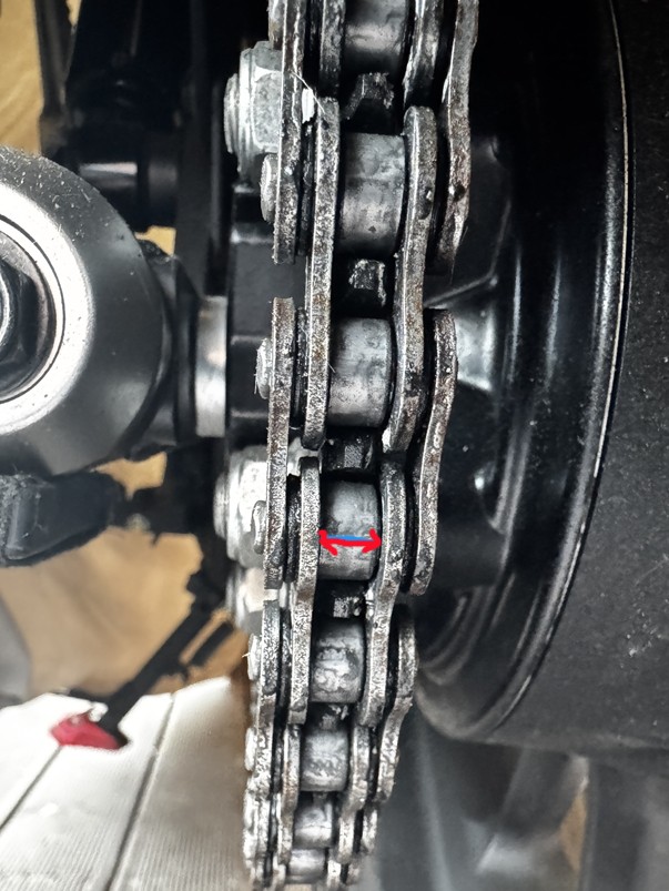 체인을 손으로 움직였을 때 일부 링크가 자연스럽게 꺾이지 않고 뻣뻣하게 고정되어 있다면 내부 마모 가능성이 있다.